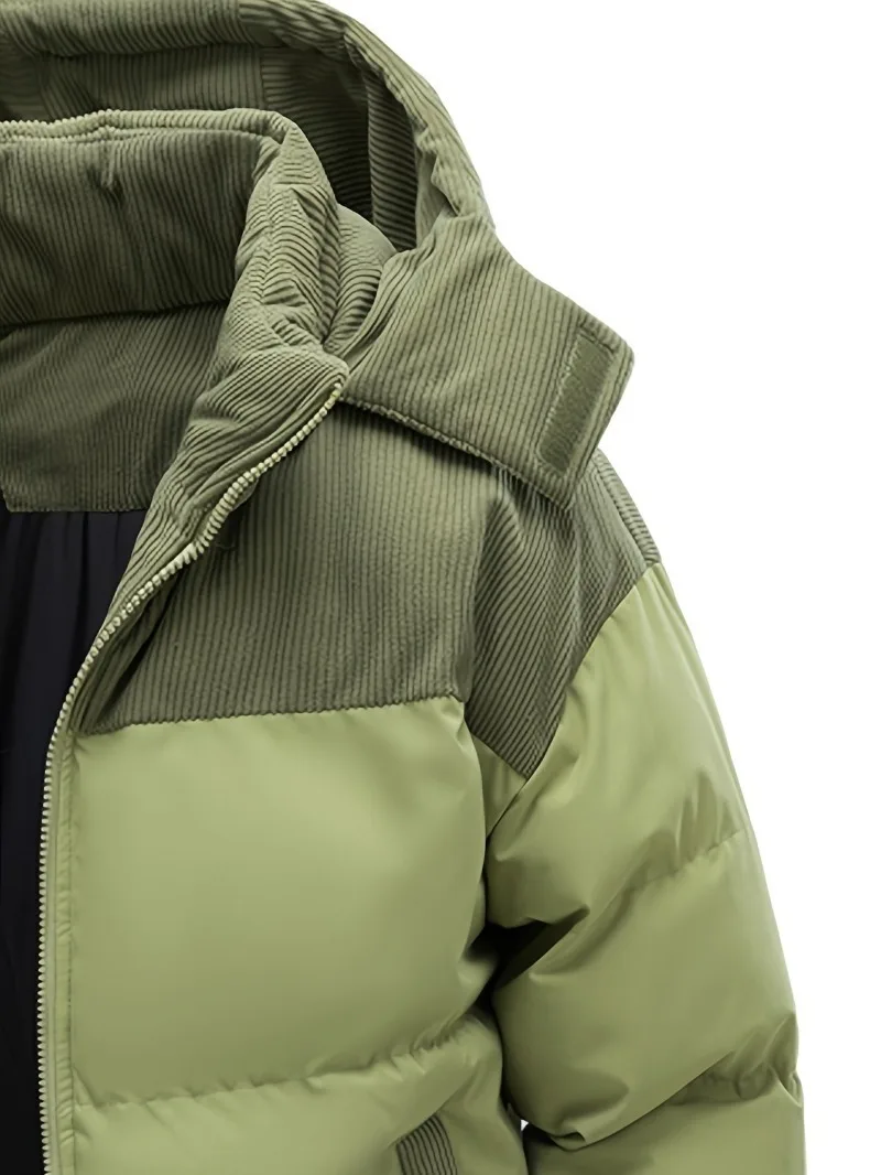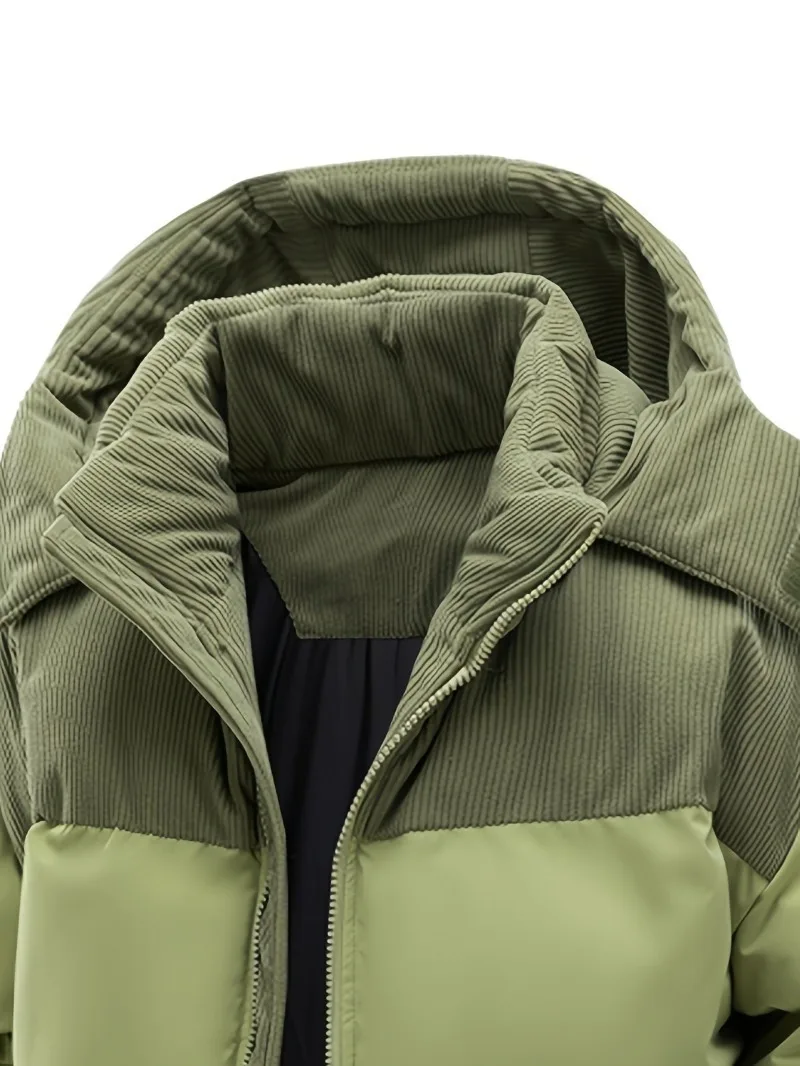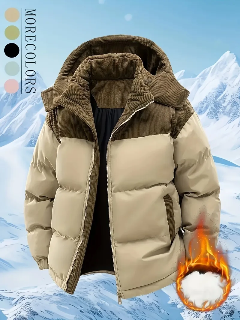 Men'S Heavy-Duty Winter Jacket - Full-Zip Hooded Coat with Zippered Pockets Non-Stretch Fabric for Cold Weather